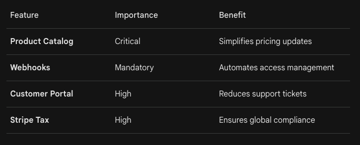 The Customer Portal: Stop building "billing settings" pages. Use the Stripe Customer Portal to let users manage their own upgrades and cancellations via a secure, hosted link.